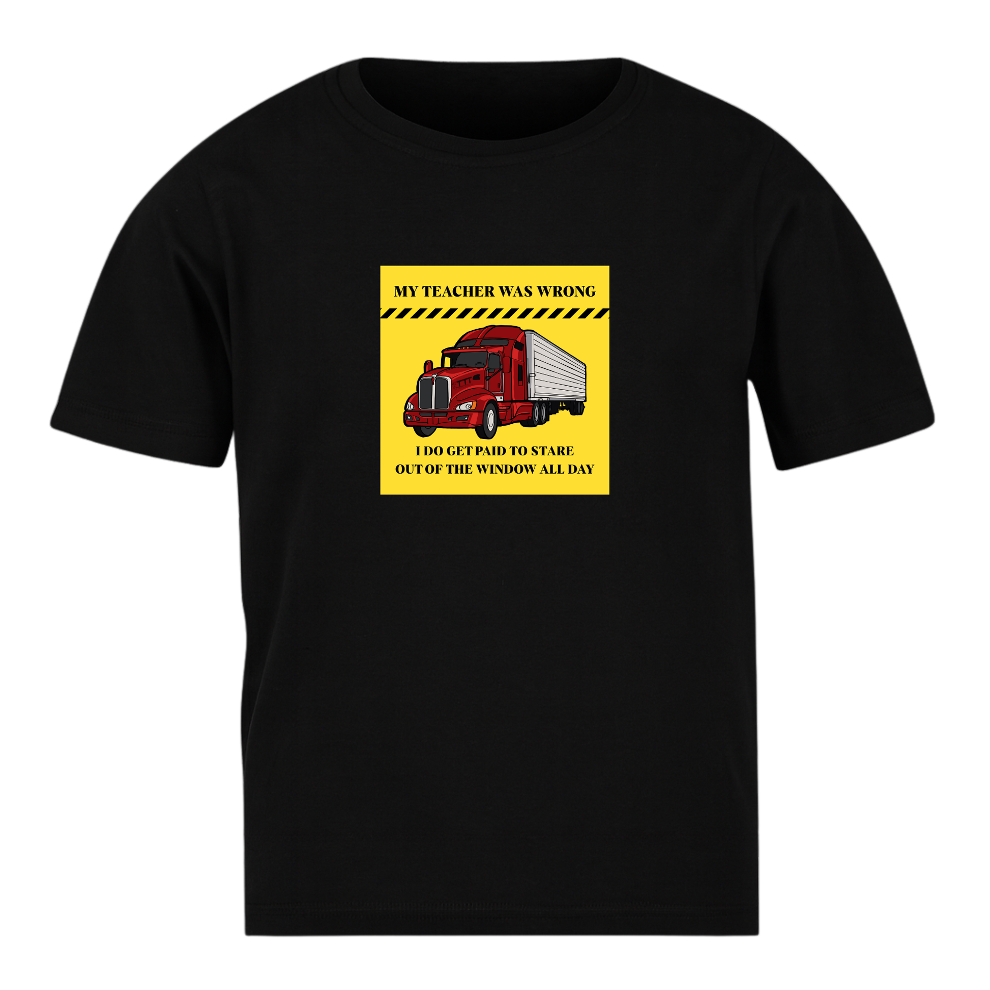 This premium black T-shirt features our exclusive “My Teacher Was Wrong – I DO Get Paid To Stare Out Of The Window All Day” graphic, printed in high resolution on durable, comfortable fabric.